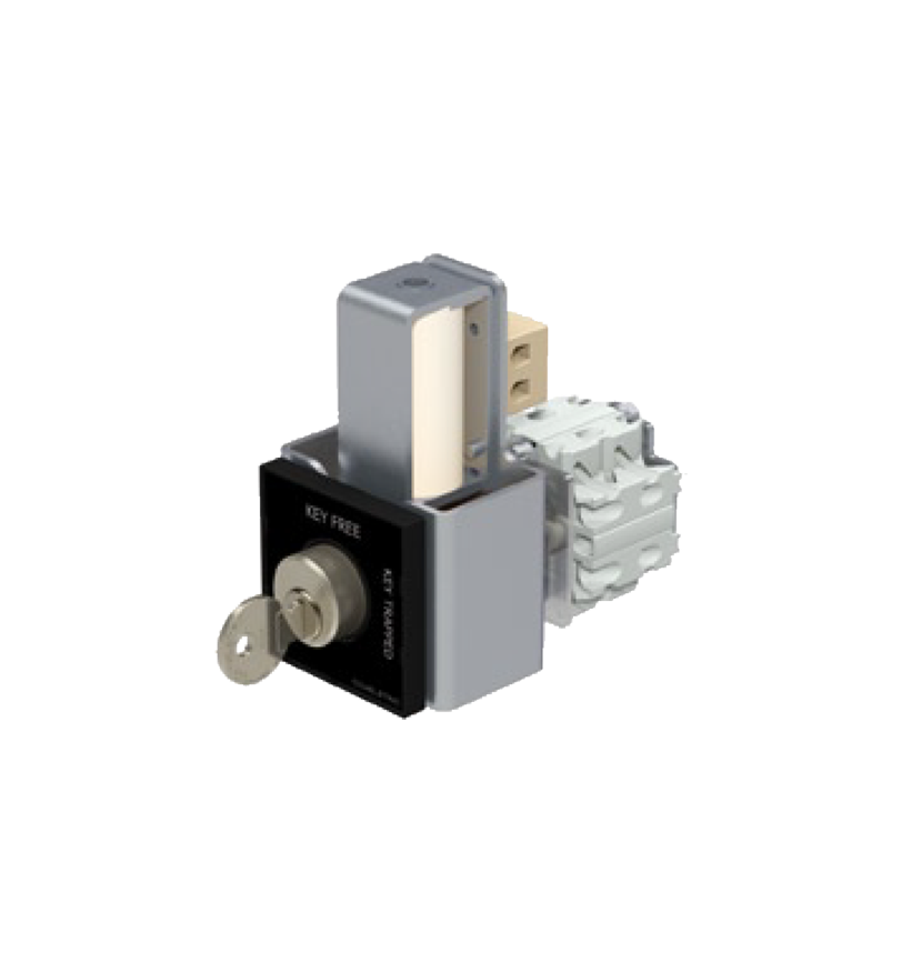 Ce verrouillage est généralement utilisé pour assurer la sécurité, en limitant l'accès aux zones dangereuses, aux machines ou à des mécanismes en mouvement. La clé ne peut être retirée qu'en alimentant la bobine après avoir appuyé sur le bouton-poussoir.